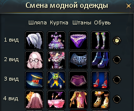 (комбинации элементов одного или нескольких стилей) для быстрой смены внешнего вида вашего персонажа. Первоначально доступно 12 ячеек для стилей и 3 комплекта. 4-9 уровень вельмож открывает доступ к дополнительным ячейкам в модном рюкзаке (максимально можно увеличить количество ячеек до 96 и комплектов до 9). Вещи, помещаемые в комплекты, остаются на складе для стилей: то есть комплекты - чисто настройка, а не дополнительные ячейки для хранения.
