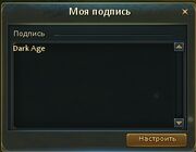 В этом разделе вы можете добавить подпись для отображения в списке ваших друзей. Придумайте текст и заполните его в соответствующее поле. После заполнение нажмите кнопку "Настроить". ВАЖНО: Вновь отредактированная подпись начинает отображаться не сразу, а по истечении некоторого времени. Также ваша подпись подпись будет показываться другим игрокам, если вы будете приглашать их в свой отряд или вступать к ним сами.