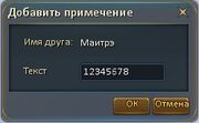 Здесь вы сможете включить или выключить отображение примечаний для своего списка контактов. Примечания заменяют собой стандартное отображение имени персонажа в списке друзей. Для редактирования примечания следует нажать правой кнопкой мыши на нужного друга в списке и выбрать раздел "Примечание".