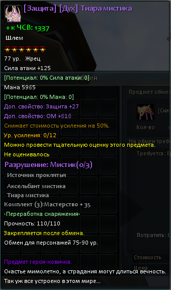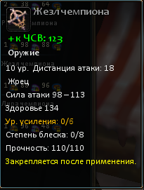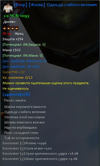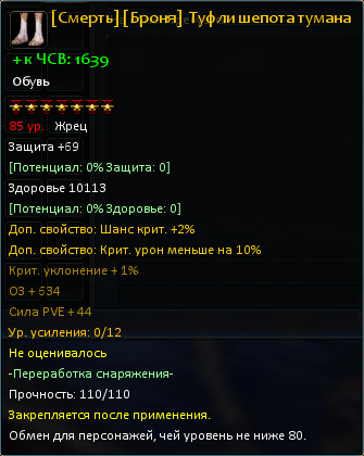 – Сравнительно низкие характеристики – Без тщательной оценки можно открыть только два дополнительных параметра снаряжения – Нельзя оценить на Шанс крита и Шанс уклона от крита |