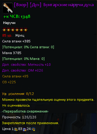 Наручи увеличат силу вашей атаки и количество ОМ.![]() |