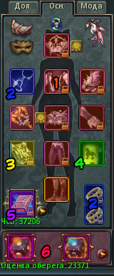 На вкладке Доп. можно разместить дополнительный комплект снаряжения, аксессуар, украшения и камень духа.