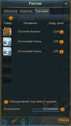 торговое поручение гильдии (доступно игрокам, состоящим в гильдии).