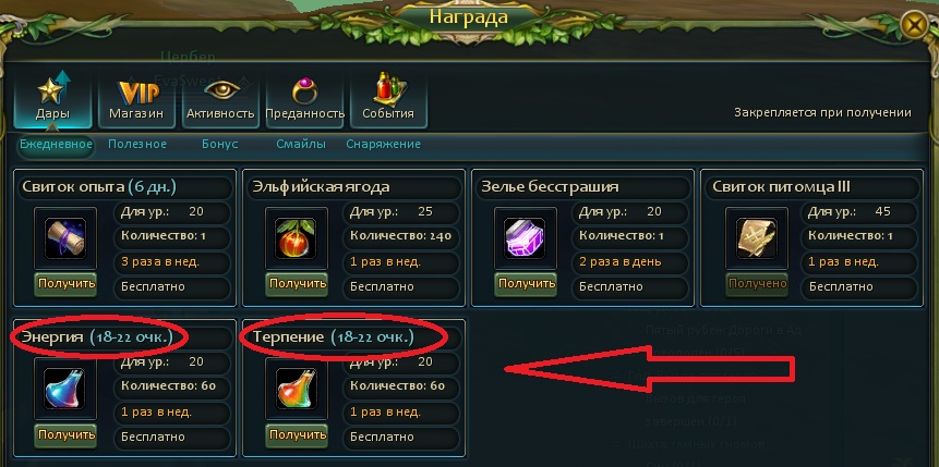 Энергия и терпение - два наиболее важных ресурса для регистрации в походы-вызовы. Восстановить очки терпения можно несколькими способами: