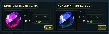 Несколько слов про пункт 5. Здесь мы видим 2 вида расходников: «кристалл навыка 1 ур.» и «кристалл навыка 2 ур.».