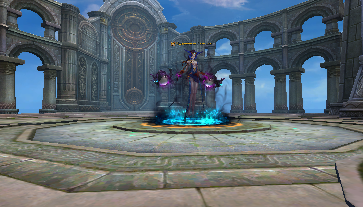 И вот убив двух своих, а то ещё и одного вражеского босса, преодолев всех мобов, нашему взору представляется сама Мудрейшая Летиция, финальный босс данного похода. Она находится на очень большой арене, и это не просто так. На танкующего персонажа на 15 секунд накладывается стакующийся дебафф, при тройном застакивании персонаж умирает, тут-то и помогает большая территория арены. Чтобы Мудрейшая перестала накидывать дебаффы, требуется или сменить танкующего, что достаточно непросто, или отбежать от босса, однако он, в отличии от Физического Зодиакального босса, с которым его можно сравнить, не стоит на одном месте, а начинает преследовать игрока. Поэтому бегать придётся много и долго. Также не стоит забывать, что кроме танкующего персонажа, есть ещё и остальные члены отряда, которым будет нелегко догонять босса и атаковать, поэтому старайтесь водить Летисию вокруг них. Кроме этого, дамочка накладывает на весь отряд стакующийся до 20 раз дебафф на снижение сопротивления Тьме, Земле, Воде, Огню и Воздуху на 50 ед.