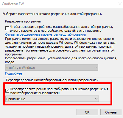 5. Включите переопределение масштабирования. (В открывшемся окне поставьте галочку «Переопределите режим масштабирования высокого разрешения».)