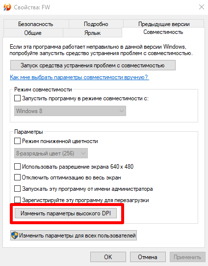 Решение находится в настройках самого приложения — через параметры совместимости и масштабирования DPI в Windows.
