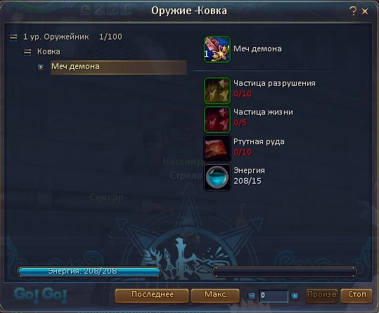 После того, как мы изучили интересующие нас рецепты и собрали себе в рюкзак все необходимые материалы, мы можем начинать работу. Открыв окно работы Оружейника. После этого нам достаточно будет выбрать необходимый рецепт из появившегося списка и нажать на кнопку Производство. Когда производство оружия закончится, вы сможете забрать созданный предмет.