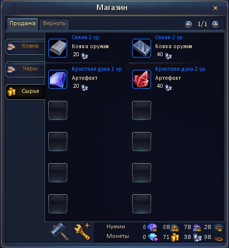 Рецепты на создание вещей при уровня Оружейника 3 и выше приобретаются у специальных НПС на Базе гильдии. Там же можно приобрести Сплав и Кристалл духа.