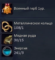 Медная руда 1875 ед. Металлическое кольцо 125 ед. Энергия 375 ед. |
