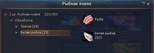 На определённом уровне Рыболовства ловятся определённые виды рыб - так, например, в Вольной Гавани на первом уровне Рыболовства ловится Белая рыбка и Треска, а на 5 - Сельдь. Также, некоторую рыбу можно выловить только в месте её естественного обитания.
