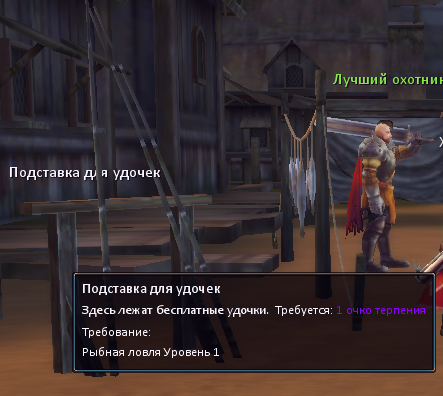 Рыболов нивенсвоему ремеслу. Кроме этого, рядом с Нивеном стоит стойка для удочек, где можно в любой момент взять бесплатную удочку, и его сын Дотти, который продаёт рецепты для создания рыбных блюд и изготовления специальной наживки.