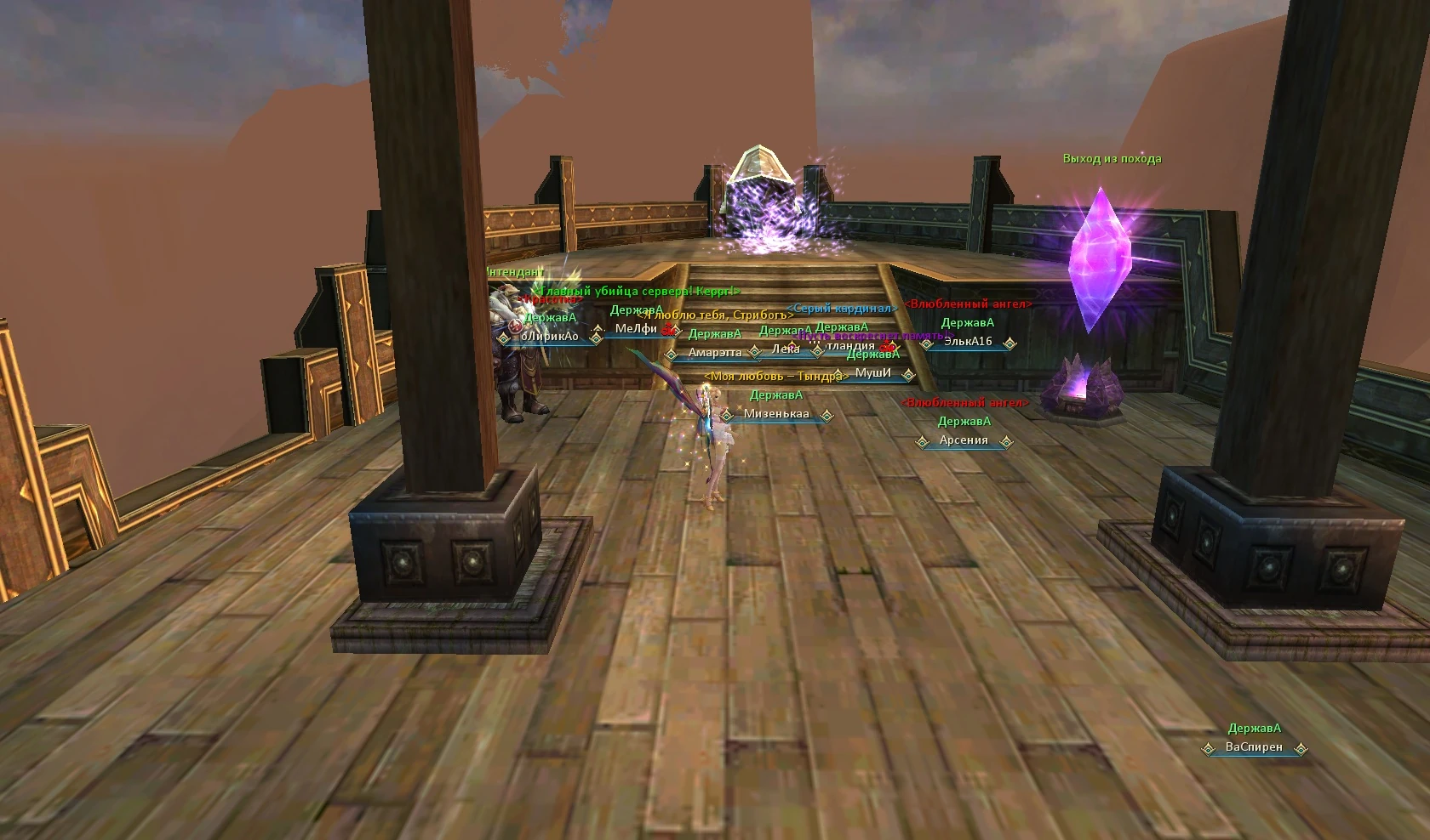 Заходя в данж, вы попадаете на палубу летающего корабля, впереди виден портал к дракону и мнемолит выхода из похода.