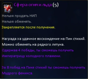 За данж Пик Стихий можно получить даже уникальных летающих маунтов: Императрицу холодного пламени и Мудрого феникса.