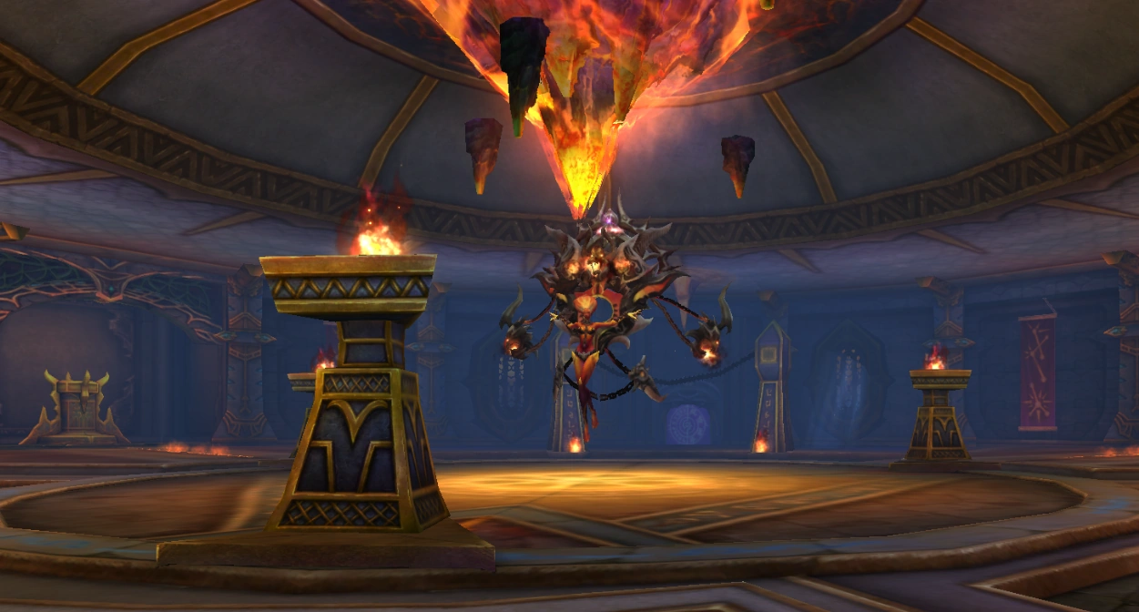Как только босс будет атакован, все игроки, находящиеся на полу, начнут получать урон, а так же не смогут использовать скиллы. Воскресить напарника на полу невозможно, но можно постараться находиться перед смертью (её можно предсказать заранее) над остатками крыши. Там очень легко воскресить напарника даже присту, спрыгнувшему с флай-маунта.