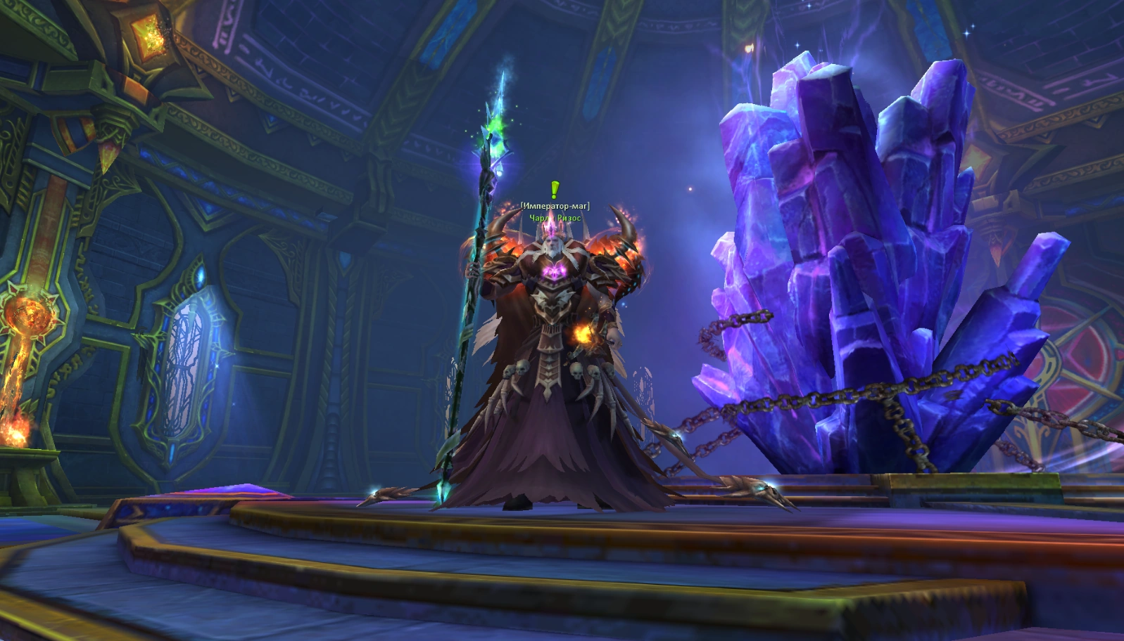 После короткого диалога в зале ломается крыша и появляется Чарли Ризос. А вот и одна из главных особенностей данжа, это летающий босс, а значит, чтобы его убить, нужно использовать флай-маунтов.