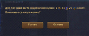2. Этим курсором кликаем на снаряжение, которое необходимо починить, во всплывающей подсказке можно увидеть цену починки выбранной вещи.