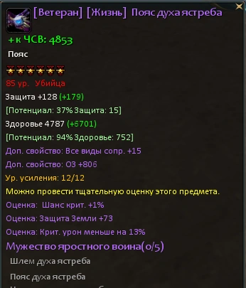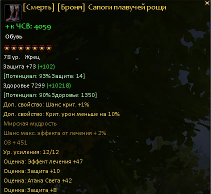 Уже на 10 уровне можно заметить, что предметы снаряжения, зеленого и выше качества, имеют основные и дополнительные параметры.