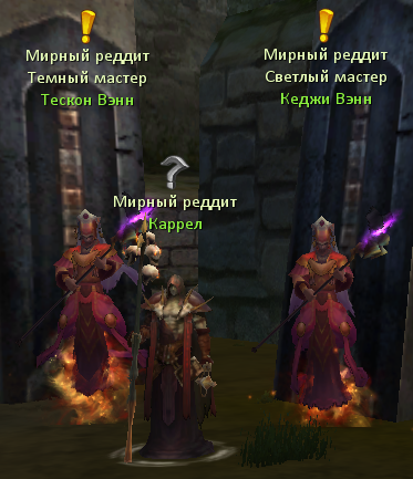 У вас появится кв.  «Загадочный народ», по которому нужно найти Каррела. Он является один из племени реддитов, про которое рассказывал ранее Руис. У Каррела вы узнаете что Дементинг находится в Цитадели Ночи. Но Каррел слишком ослаб, ему нужно магия чтоб окрепнуть, поэтому вы должны поторопится и принести 50шт «Большой тоник ОМ», их можно достать у любого торговцам зельями.