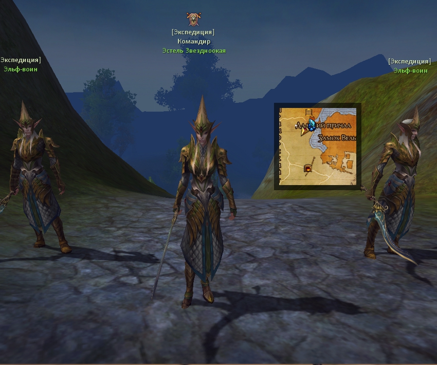 Азу появляется не каждый заход и стоит возле костра, но лучше пройти дальше по дороге до момента когда начинается сражение между нагами и эльфами. Для выполнения квеста нужно убивать мобов в походе и получить 3 корзинки с грибами и затем сдать квест Азу (обычно оно выполняется проще чем в маяке).