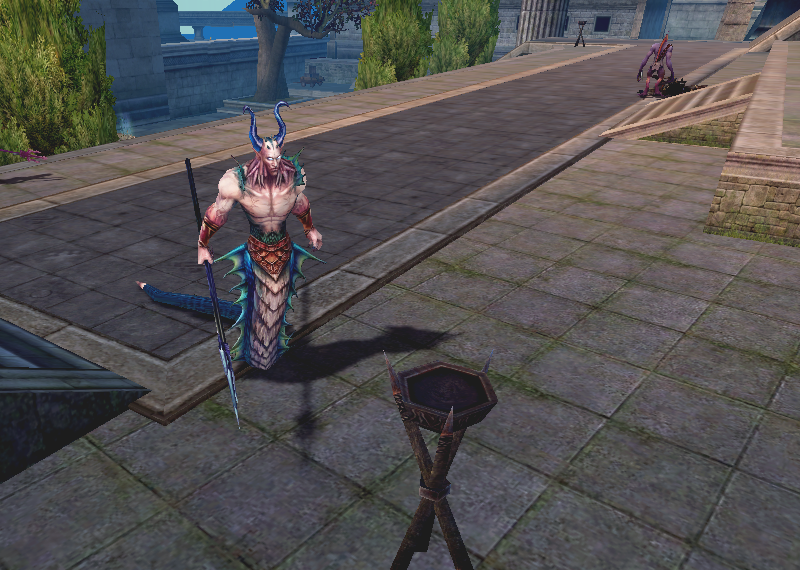 Оббежав с правой стороны несколько строений, окружающих центральную площадь с монстрами, мы добираемся до тупика, в котором стоит один грустный НПС-страж. Остановившись в этом месте, восстанавливаем здоровье и показатель маны, обновляем баффы, если к этому моменту они успели спасть.